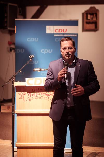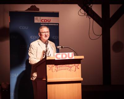 Der Vorsitzende der CDU Kreistagsfraktion Hermann Norden begrüßte die Gäste in der voll besetzten Festscheune des Forellenhofes in Hünzingen. Die anwesenden Gäste bildeten ein breites Spektrum u.a. aus den Führungsebenen des Landkreises sowie einzelner Städte und Gemeinden, aus der parteiübergreifenden Politik, aus ehrenamtlich Engagierten der Feuerwehr, des Sports, der Landwirtschaft, der Kultur sowie Angehörigen der heimischen Wirtschaft. Und natürlich begrüßte er den Ehrengast, den neuen Generalsekretär der CDU in Niedersachsen.